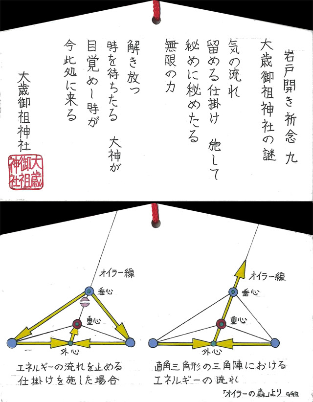 裏面には、三角陣結界の三つの『いやしろち』から流れ出る気を止める仕組みに付いて説明している。